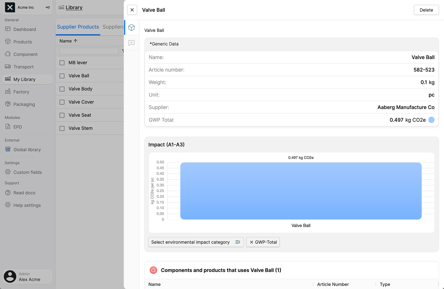 A supplier product's data can come from one of two sources: either directly from suppliers using EandoX, or from publicly available EPDs imported by our team. This source is shown in the type field: