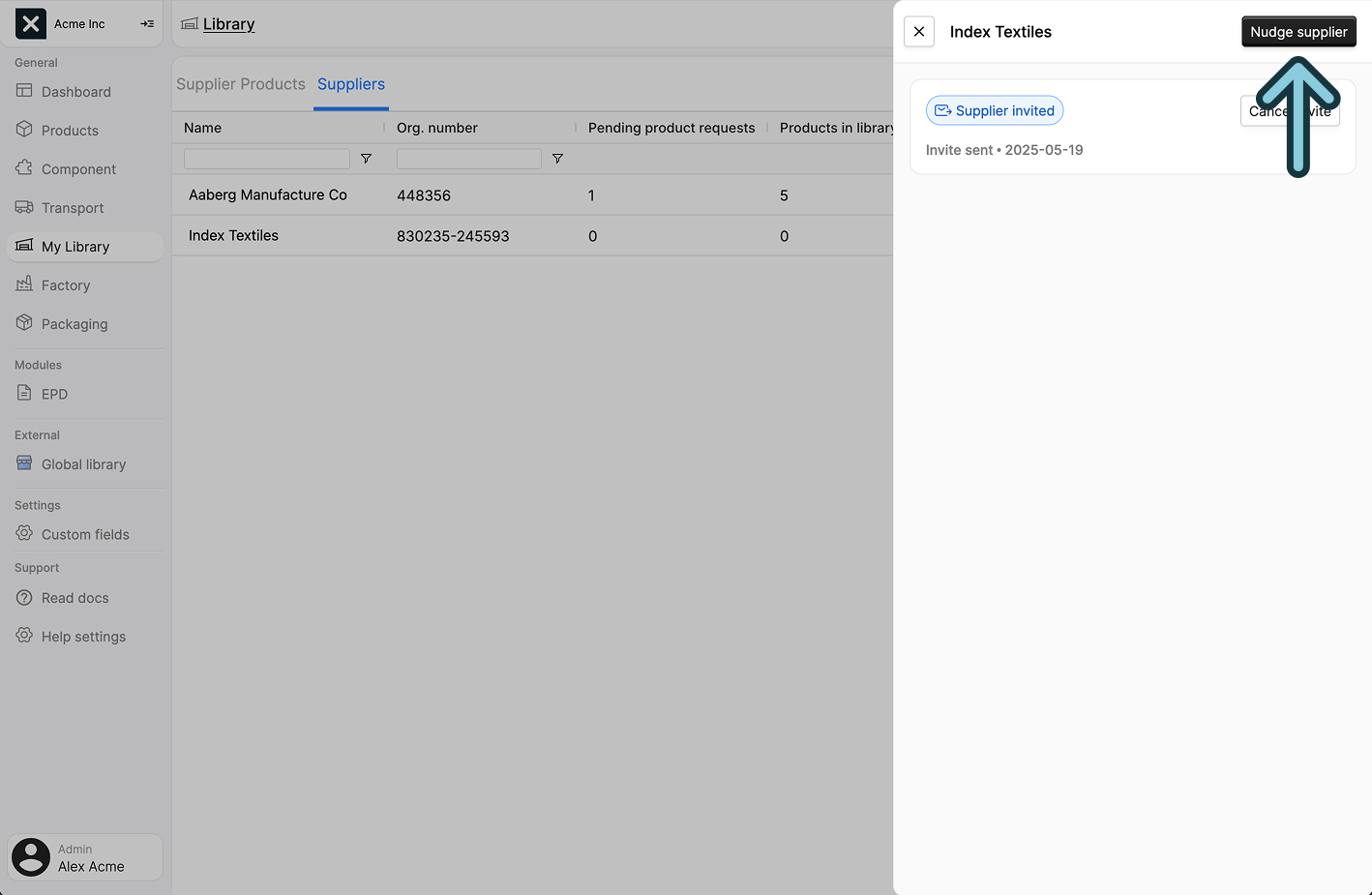 If a supplier hasn't responded to your invitation for a while, you can send them a reminder. In the supplier's sidepanel, look for the Nudge supplier button. This will send a gentle reminder email to the supplier about your pending invitation.